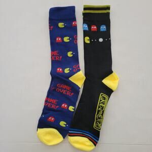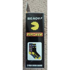 Pac-Man Crew Socks Set of 2 One Blue Pair One Black Pair New In Box Shoe Sz 6-12