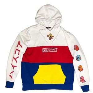 Pac-Man Sweatshirt Hoodie Red Blue Yellow Color Block Medium