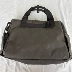 Laptop bag, it is new with tags but there are some discolorations from storage, a few spots inside, exomesh, long strap is tucked in the back zipper pouch, great overall condition