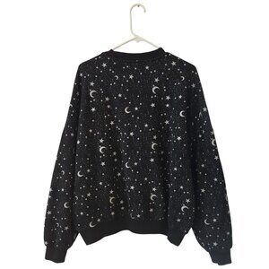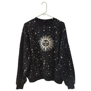PacSun Black Celestial Sun Stars Moon Graphic AOP Sweatshirt One Size Crewneck