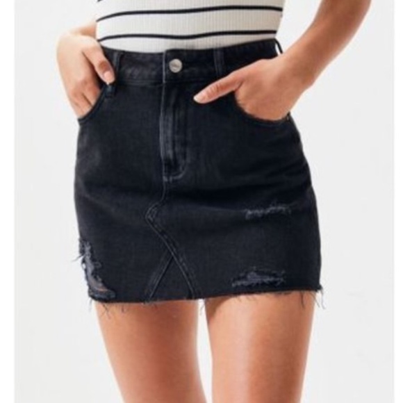PacSun Black Distressed Denim Mini Jean Skirt 27