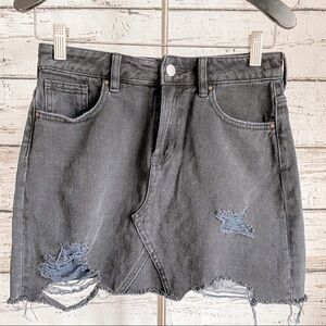 PacSun Black Distressed Frayed Denim Skirt.