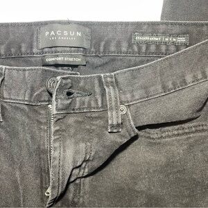 Experience the perfect blend of style and comfort with these PacSun Black Skinny Jeans. Crafted from high-quality denim, they feature a sleek skinny fit and a trendy distressed design on the thigh. Ideal for adding a touch of edge to any outfit.