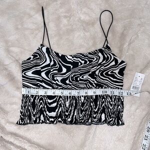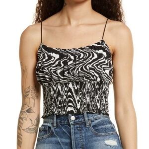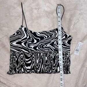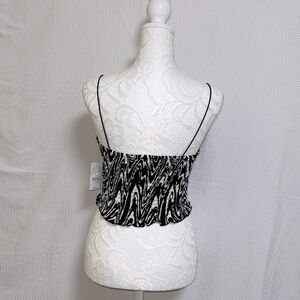 New With Tag PacSun Black & White Wavy Pattern Pleated Bust Smocked Camisole Crop Tank Top - Size X Small