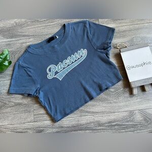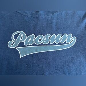 Stylish blue crop top. Features PacSun logo. Perfect for casual wear.