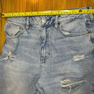 These PacSun jeans offer a timeless straight leg fit in a classic blue shade, enhanced by heavy distressing for a vintage look. The denim features prominent rips at the knees and intentional fading, giving them a stylish, worn-in appeal. Perfect for adding a touch of edge to your casual wardrobe.