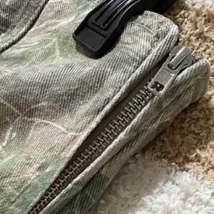 Stylish camouflage ripped strapless crop top. Features a rugged design. Perfect for a concert!