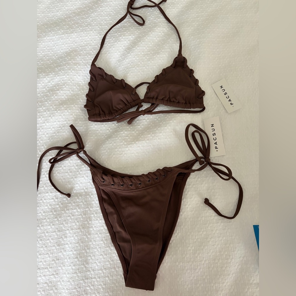 PacSun Chocolate Ruffle Bikini Set
