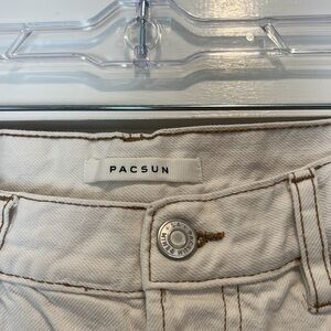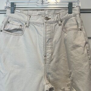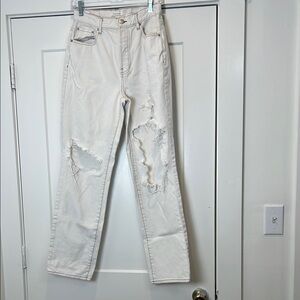 Trendy PacSun cream Dad jeans size 27 with a distressed style. Perfect for casual wear. No stretch! Button fly closure.
