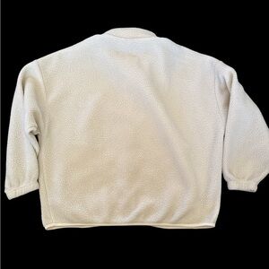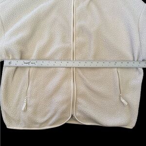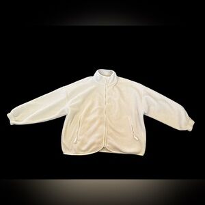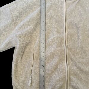 Stay cozy in this PacSun sherpa-style fleece jacket. Features a soft textured ivory/cream fabric, full front zipper, stand collar, and two zippered side pockets. Lightweight yet warm, perfect for layering in cool weather.