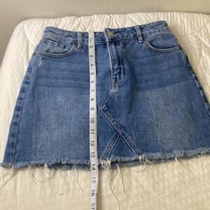 Beautiful skirt by PacSun. This is a size 25. Denim with a raw him. Please feel for asking questions.