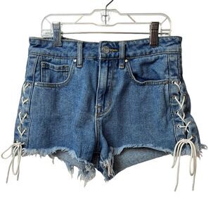 PacSun Denim SIDE TIE LACE UP Fringe High Rise Shorts Blue Size 25