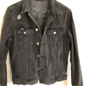 PtP 19” Length 24” Sleeve 24” Distressed black denim jacket