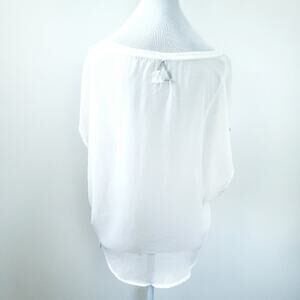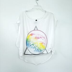 Very bohemian eagle graphic shirt with side top and open sleeve holes. Sheer in back with high-lo hem. Festival wear.