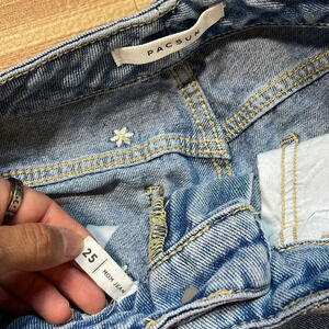 PacSun Embroidered Daisy Light Wash High Rise Mom Denim Jeans Women's Size 25