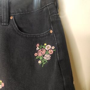 PacSun floral embroidered black denim jean skirt. Size 25. Cotton. (18089)
