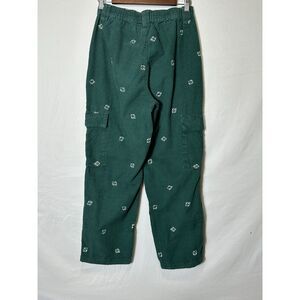 PacSun Green Corduroy Cargo Pants White Dice All Over Elastic Waist Size M