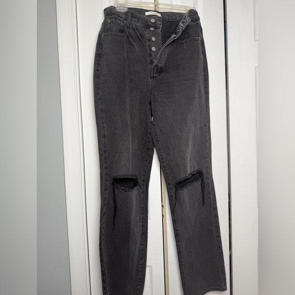Chic high rise jeans with stylish rips. Perfect for casual wear.