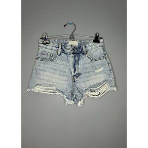 Experience the perfect blend of style and comfort with these PacSun High Rise Festival Shorts for Women. Designed with a flattering high-rise waist and a playful 2-inch inseam, these lightweight denim shorts are a must-have for your summer wardrobe. The versatile blue hue is accented with a chic distressed finish, embodying a trendy yet timeless aesthetic that complements a range of tops and footwear. The shorts are a size 26 (the equivalent of approximately a size 2 or 4) for women.