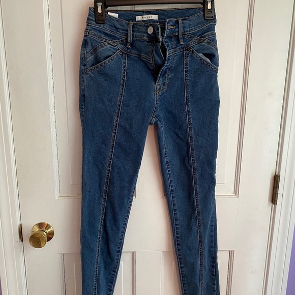 These Pac Sun blue jeans are super cute with a line design to make them more fashionable! they are never worn but fit super well and are perfect quality.