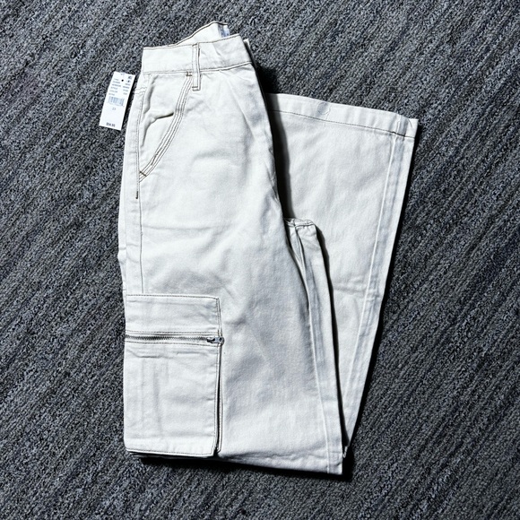 PacSun High Rise Jeans in Light cream,wide leg,rigid no stretch