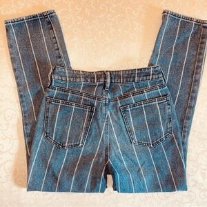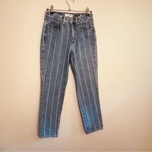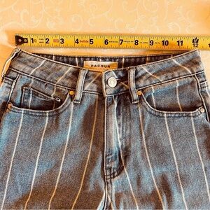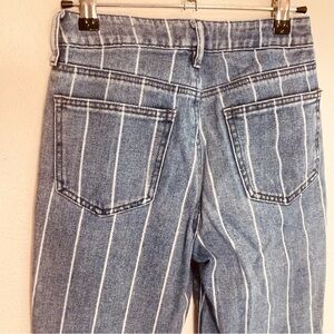 PacSun high rise striped Mom Jeans. Light wash Railroad Stripe cropped jeans. Five pocket style with button zip fly. Approximate measurements laying flat: the waist is 12” with a 10” rise. The inseam is 25” with a 6” leg opening. Wear them down or roll them up a little. Super cute 100% cotton cropped ankle jeans. Great condition. Waist Size 23 approximately a size 0