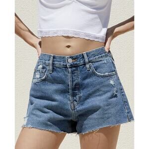 PacSun Shorts, Womens Denim Shorts, Womens Jean Shorts, Raw Hem Shorts, jean shorts, blue denim shorts, classic blue jean shorts, casual denim shorts, trendy shorts, denim shorts, Casual jean shorts, Preppy jean shorts, Urban streetwear denim shorts, Feminine denim shorts, Minimalist denim shorts, Trendy denim shorts, Medium Wash, High Rise, Womens, WMNS.