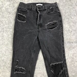 PacSun Jeans Women's Size 28 Ultra High Rise Slim Button Fly Black Ripped Ankle