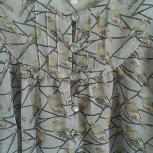 Super cute top with birds, great over a tank top or camisole. Looser, flowy style. In great shape, clean.
