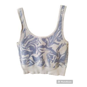 PacSun LA Hearts Blue Marble Button Sweater Crop Top Shirt Small 90s Y2K