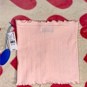 Stylish light pink tube top with delicate ruffles. Ideal for casual wear.