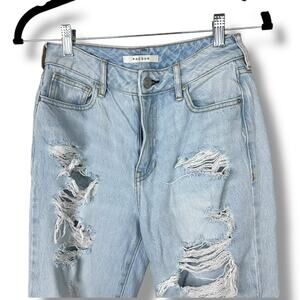 PacSun Light Wash Blue Edgy Distressed High Rise Ripped Mom Denim Jeans Size 25