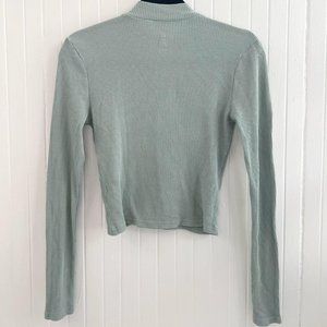 PacSun Me To We Quarter Zip Waffle Long Sleeve Shirt. Sage green with silver quarter zipper. Size medium and stretchy but fitted cut.