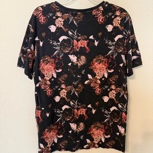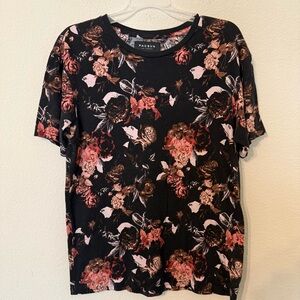 PacSun Stylish black t-shirt with a vibrant floral print. Perfect for casual wear. Size Medium