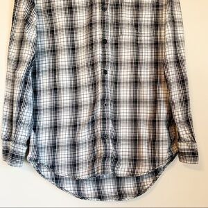 PacSun Men’s Longer Fit Black White Plaid Flannel Casual Button-Down Medium