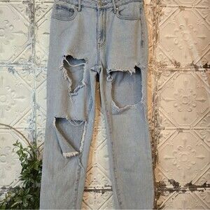 PacSun Mom Jeans Distressed Light Eco Blue Denim Ankle Jeans Size 27 Retro Y2K