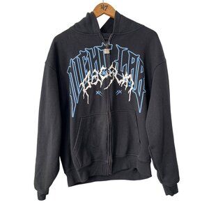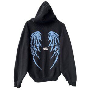PacSun NL25h+ Hoodie Size Medium Nightlab Angel Wing Graphic Black Blue Comfort