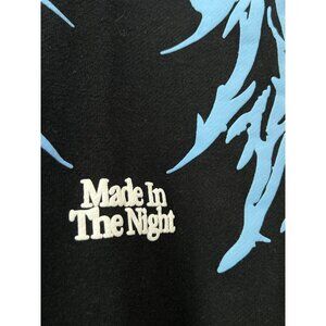 This PacSun NL25h+ Night Lab Hoodie features a bold black design with striking blue angel wing graphics and "Made In The Night" text details. Comfortable medium size fit.