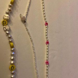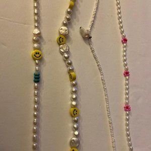 PacSun Necklace Bundle (4) - Yellow Happy Face, Mushroom, Pink Flowers