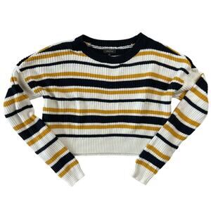 PacSun PS/LA Women's Small Cropped Sweater White Yellow Stripe Crew Neck