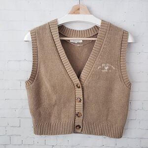 PacSun Pacific Sunwear Sweater Vest Size S Tan Button Front Swank Tank Academia