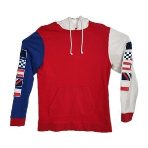 PacSun Pullover Hoodie Men's M Colorblock Red/White/Blue Flag Patches on Arms