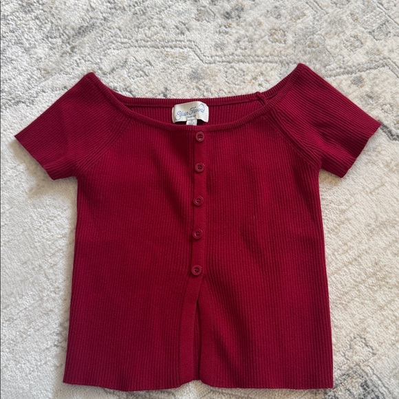 Stylish ribbed top with button-up front. Off-shoulder design. Perfect for casual wear.