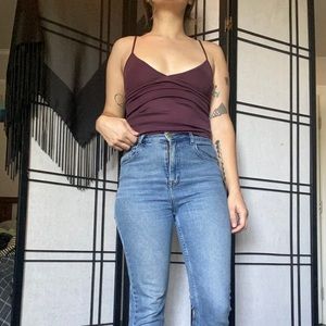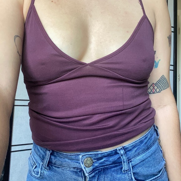 PacSun Me to We merlot color tank top. This is a soft ribbed tank, styled like a longline bralette. It would be so cute for going out in the summer or layered with other pieces on colder nights.
