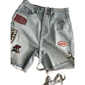 PacSun Shorts Womens 27 Blue Denim Patches Cutoff Distressed Dad Short High Rise