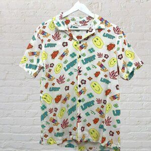 PacSun Smiley Face Button Shirt M Retro 70s Hippie Graphic Print