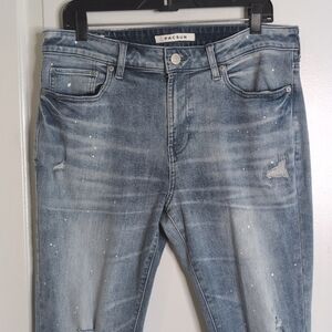 PacSun Stacked Skinny Jeans Medium Wash Distressed w Paint Splatter Men's 32x34.