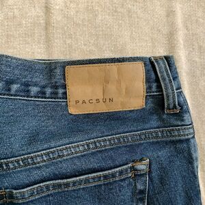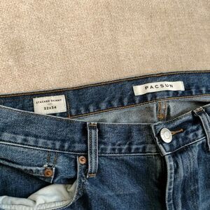 PacSun Stacked Skinny 32x34 Cotton and Spandex blend Mid rise medium wash measurements in photos