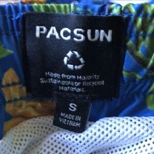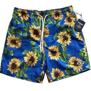 PacSun Sunflower Print Blue Yellow Swim Trunks Mens Small