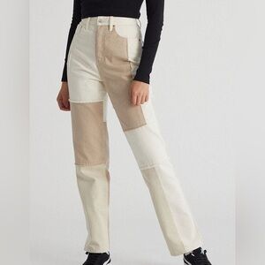 PacSun Sunwear Off White Patchwork Dad Jeans